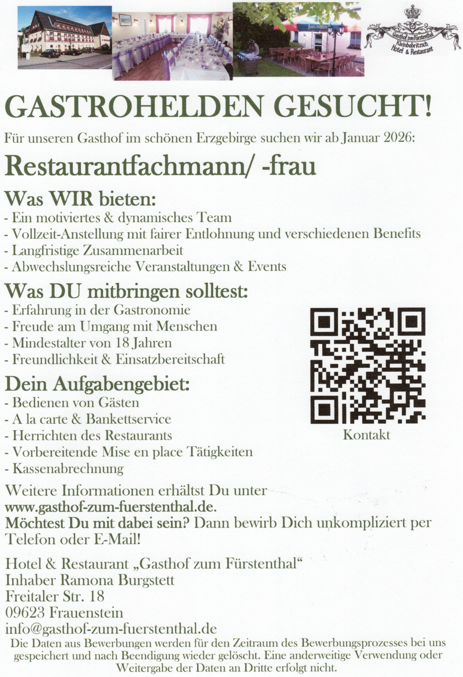 Ab Januar 2026 suchen wir Verstärkung im Restaurant.