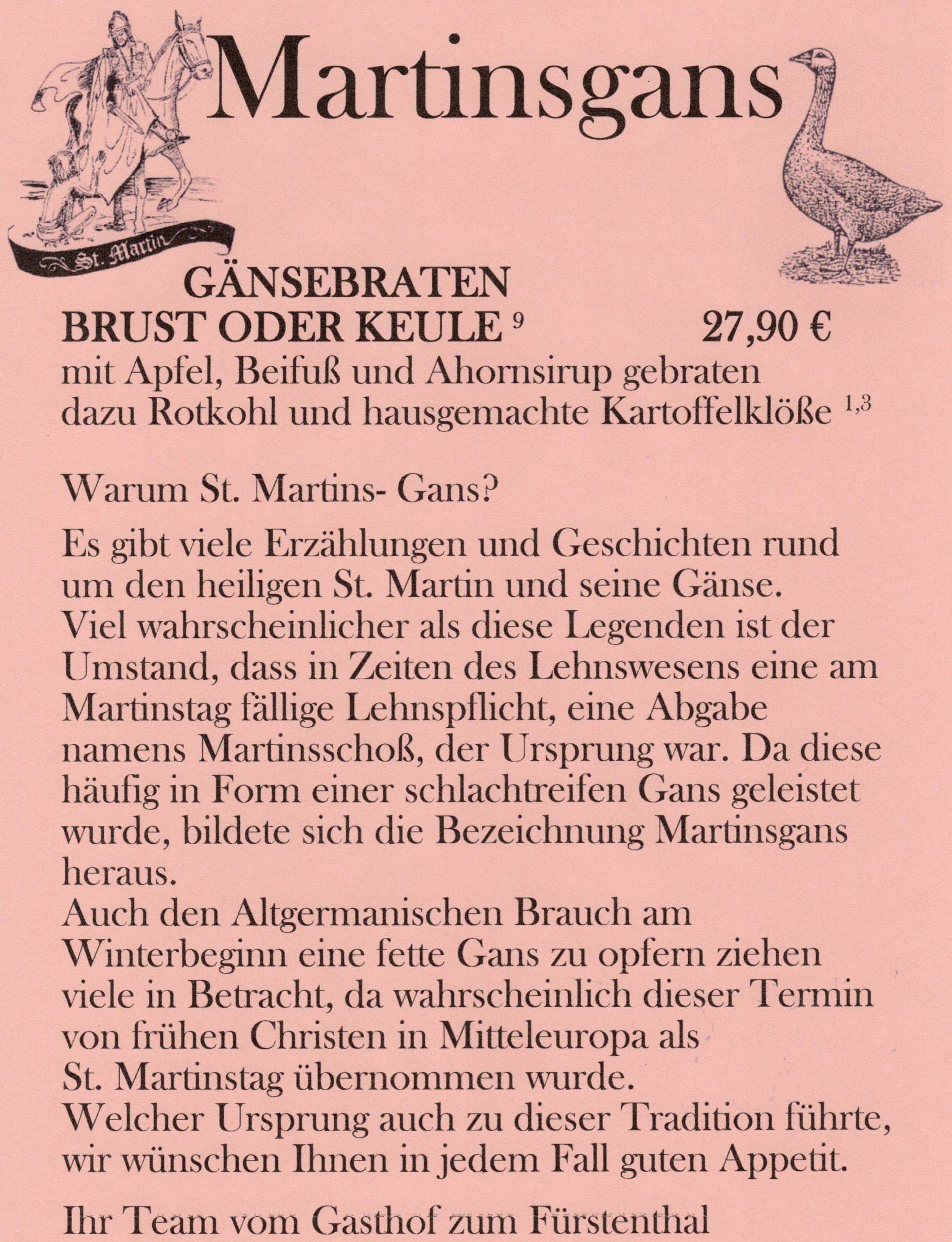 Ab dem 12. November 2025 bieten wir wieder die traditionelle Martinsgans an.